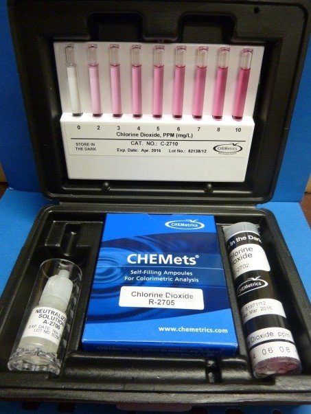 The Gastec units are the most cost effective means of measuring concentrations of ClO2 in its gaseous state. They are stock items.